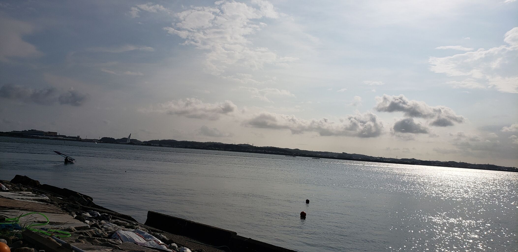 2020年08月23日 夏休みラストウインド 今日で夏休み終了。最後に吹きました。南東の風10m/s。3.8㎡ジャストで乗れました。ずっと三ヶ日の方は雨が降っていたのに村櫛は雨が降らず不思議に思いながらウインドしていました。風が3時半頃に落ち終了。2時間半のウインドでしたがいい練習が出来ました。この夏休みは一杯乗ったな~‼️