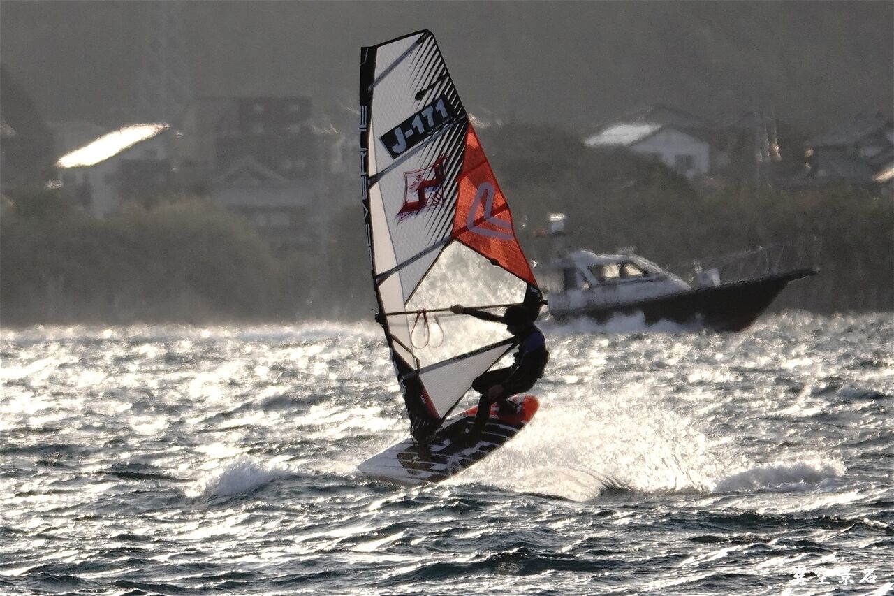 2022年01月27日 3.8㎡の調子が良い! 今日も放課後練習。暖かくて良い練習が出来ました。3.8㎡ジャストオーバー。12m/sぐらいあったけど3.8㎡を使えたのでだいぶ大きいセイルを使えるようになったと思います。3.8㎡回転しやすくて楽しい!