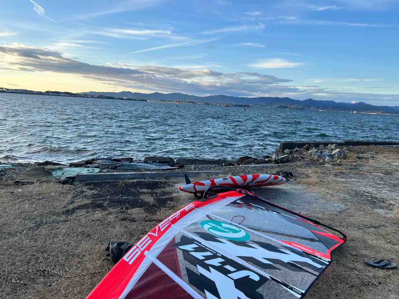 2023年12月26日 ウェーブセッション 今日は外海でウェーブ練習。しっかり波が入り良い練習日和でした。風は3.7㎡ジャストオーバー。波は肩胸で程良いコンディションでした。ジャンプ、波乗り共に色々挑戦出来てめちゃくちゃ楽しかったです!年末年始は風吹くかなー?