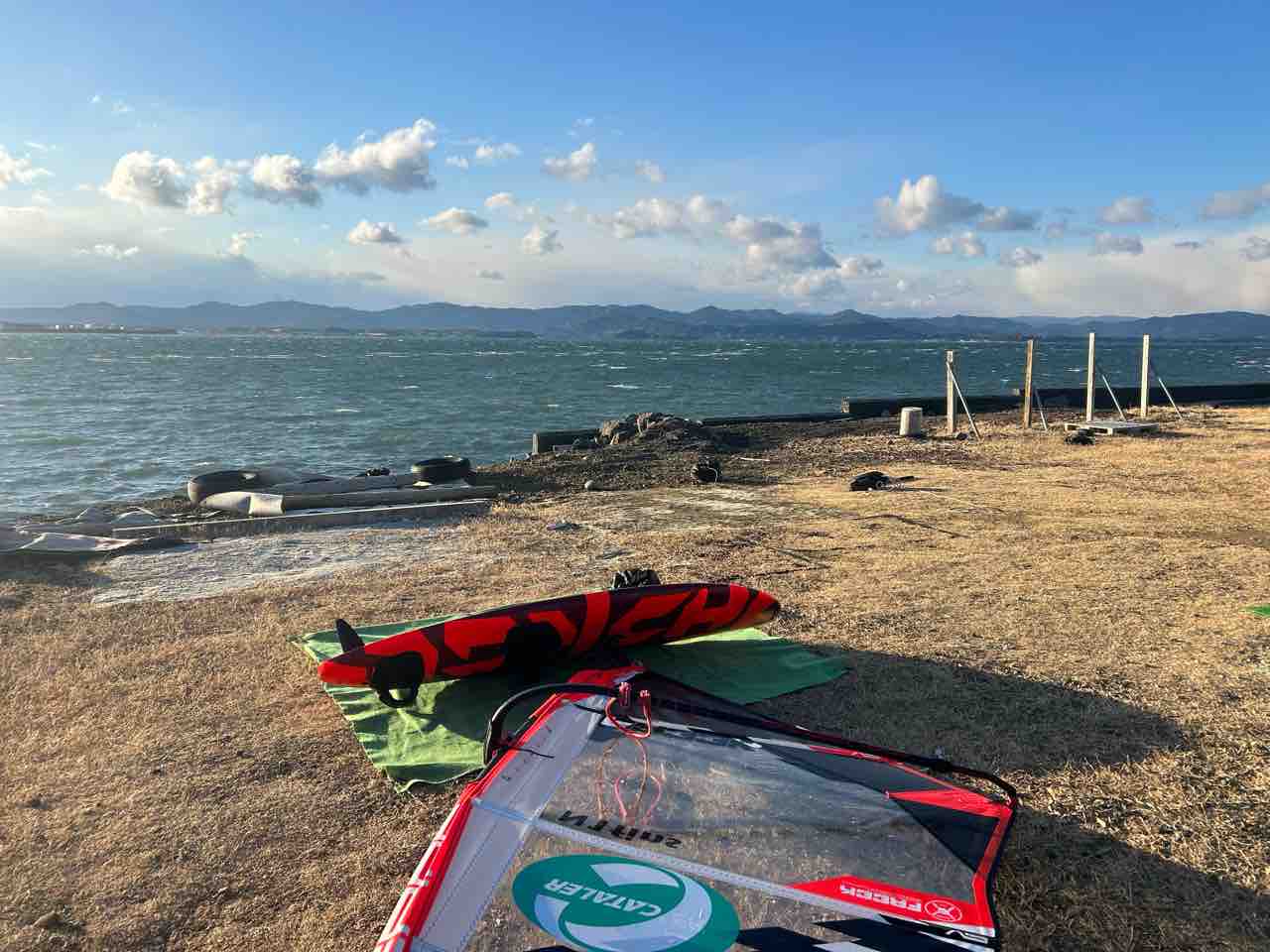 2025年02月17日 爆風の御前崎へ! 今日は御前崎に用事があったのでそのついでにロングビーチでウェーブ練習。昼間はとんでもない爆風でスーパー炸裂してました。20m/sはあったかな?明日から御前崎でウェーブの世界大会が始まることもあり海外選手が集まっていて面白かったなー。波乗りもっと上手くなりたい!