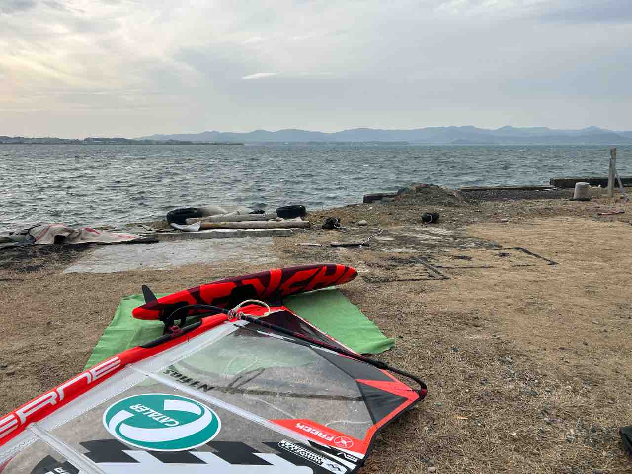 今日は一日風が吹いて浜名湖でフリスタ練習。